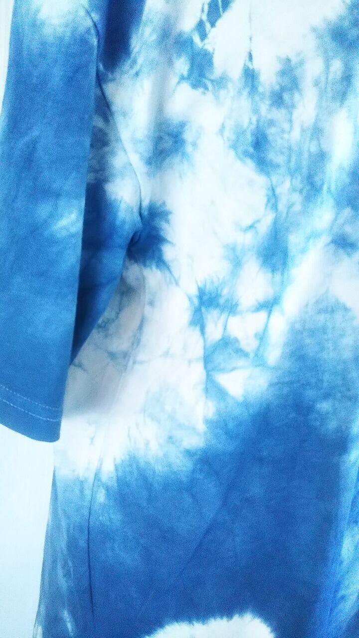 本藍染 綿のゆったりしたTシャツ 中厚 ムラ染めがオシャレです。本藍染なので、高級感があり、ノーアイロンでラフな着こなしが出来ます。誕生日 プレゼント 肌にやさしい虫よけ効果…。