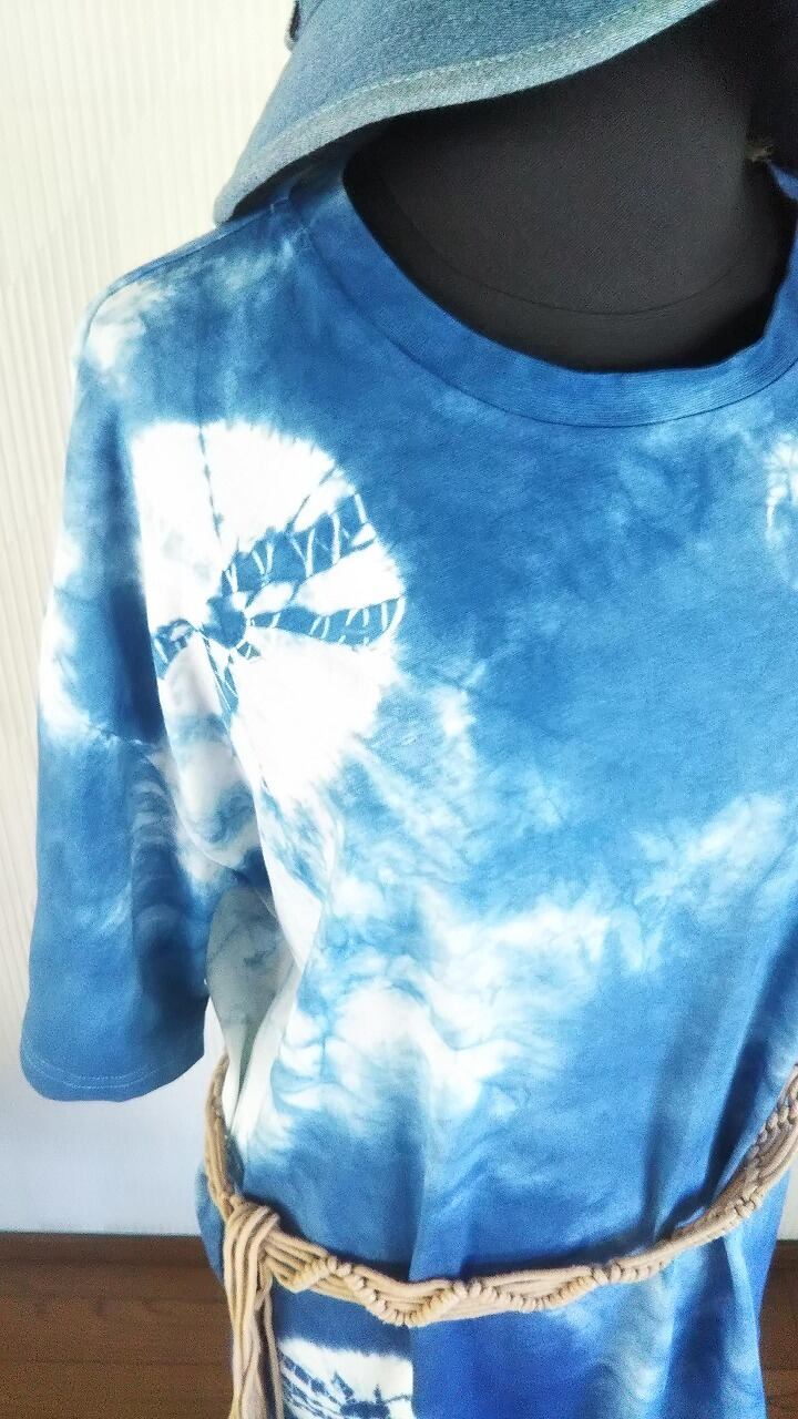 天然染料使用、本藍染 綿のゆったりしたTシャツ