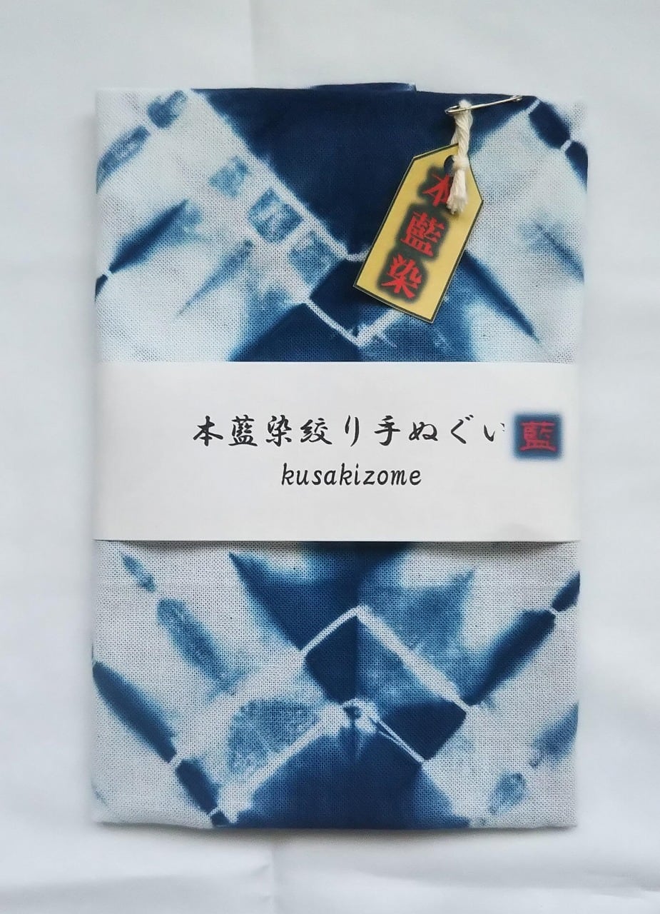 草木染 手ぬぐい、伝統の大枡絞りを手絞りしています。また 手絞りと本藍染の自然の風合をお楽しみください。サイズ90×40cm、日本手ぬぐい。