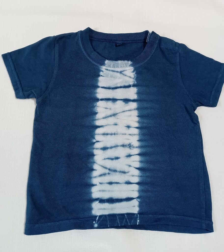 本 藍染め コットン 100% ベビー 半袖Tシャツ、前に絞りをデザインしております。
